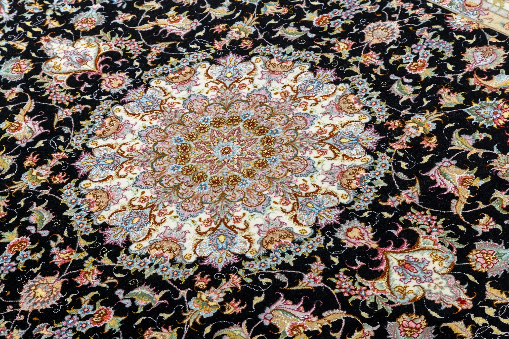 Crafted at a density of 55 Raj (55 knots per 7 centimeters), Desert Midnight blends fine detail, serene beauty, and the enduring craftsmanship that defines Tabriz weaving excellence.